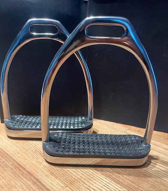 Stigbyglar av rostfritt stål i Fillismodell. Fillis stigbyglar håller hög kvalitet. Fillis stigbyglarna levereras i par samt komplett med stigbygelinlägg i äkta gummi.
