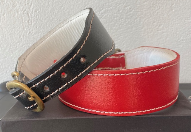 Brett fodrat läder hundhalsband från Ueqs i röd eller svart, Bred 5cm.